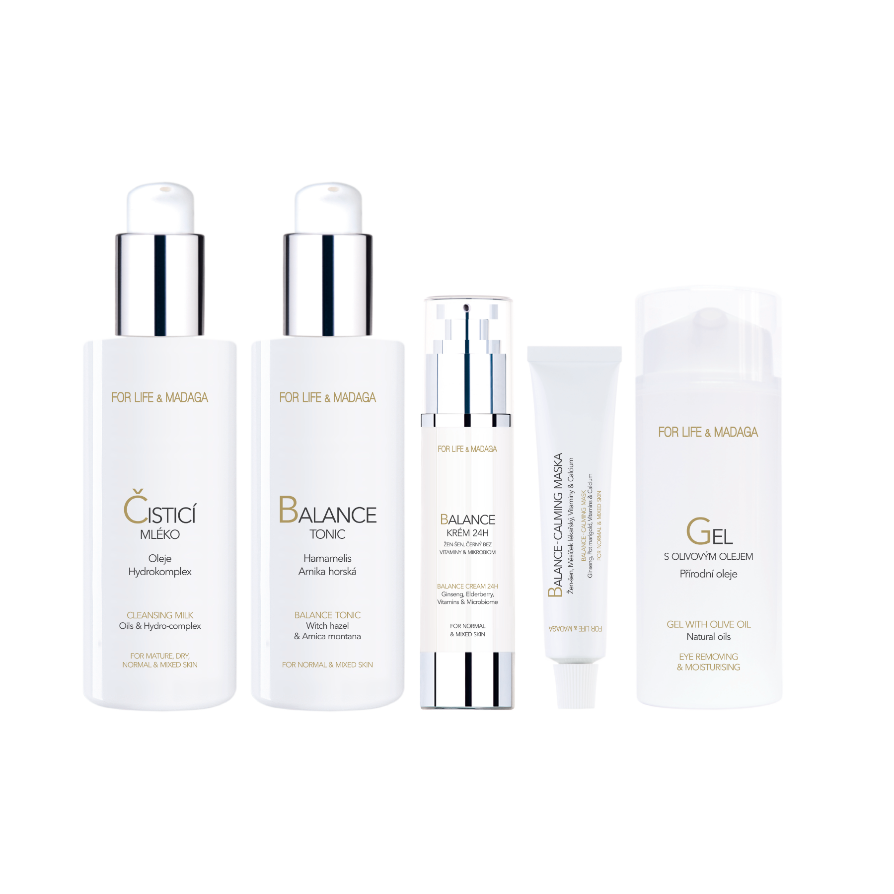 SET of complete care for normal and mixed skin.